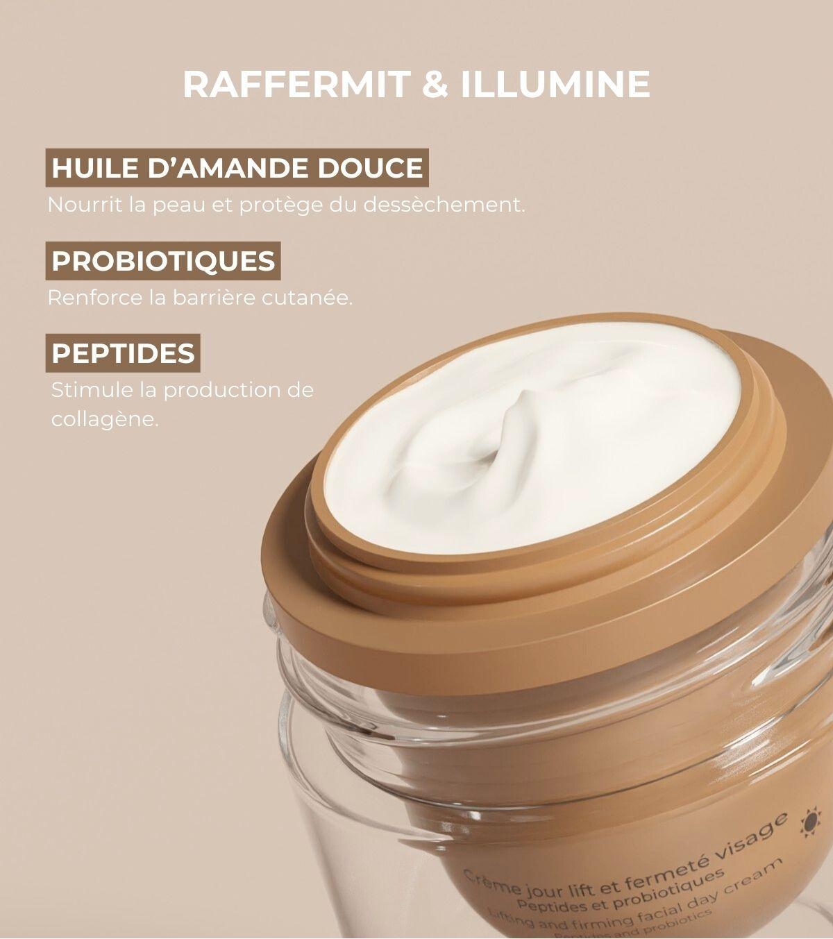 Esta crema de día es preventiva, protectora y nutritiva, enriquecida con peptidos y probioticos, retrasa los efectos del tiempo y deja la piel resplandeciente.