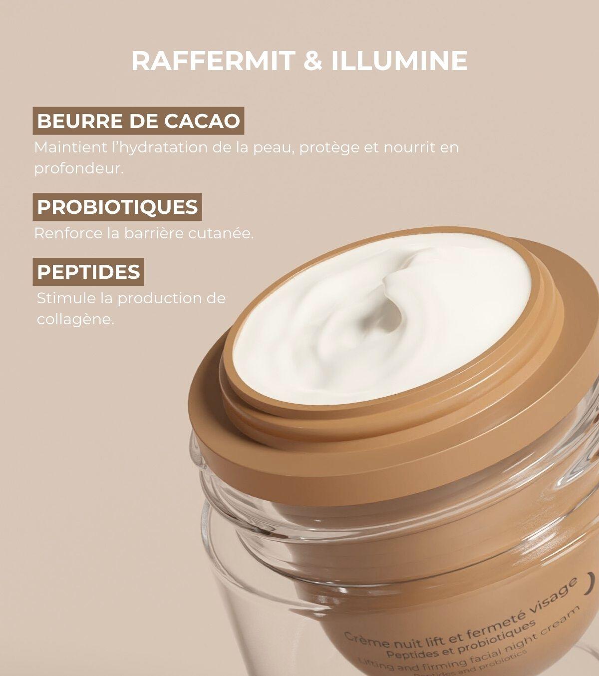 Esta crema de noche con peptidos y probioticos se adapta a todas las necesidades de las pieles maduras. Reconstituye las reservas de la piel y le aporta los elementos para su regeneración.