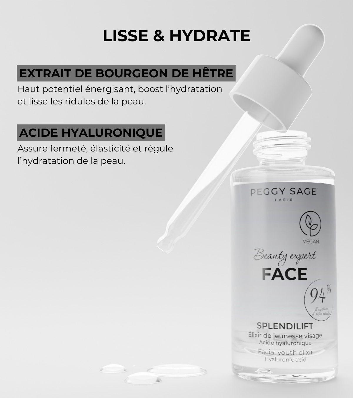 Verdadero elixir de eficacia. Este suero con un complejo de 3 ácidos hialurónicos de distintos pesos moleculares y activos tonificantes, hidratantes, alisantes y antiedad.